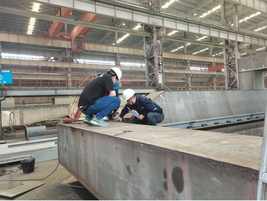 2021年,莊巍同志發(fā)現(xiàn)原先運用在陸豐900t固定式門座機上的工藝還可以改進,于是在反復(fù)地試驗和不懈地努力下,將改進工藝運用到三澳650t項目中,解決了廠內(nèi)吊裝設(shè)備能力不足且避免請大型起吊設(shè)備花費大額費用的問題。同年公司接單的德龍5037門座機項目在海重公司制作,由于該類型也是海重公司第一次制作,門架門腿結(jié)構(gòu)特殊,正常制作無法滿足圖紙要求,經(jīng)過一系列制作樣品驗證,且在圖紙視圖存在缺陷和無檢驗基準情況下,他卻始終堅信“沒有完不成的項目”,在經(jīng)過不斷的實踐后,發(fā)現(xiàn)可以通過放樣設(shè)計基準靠板可以解決問題,最終讓制作班組快速順利地完成了制作任務(wù)。