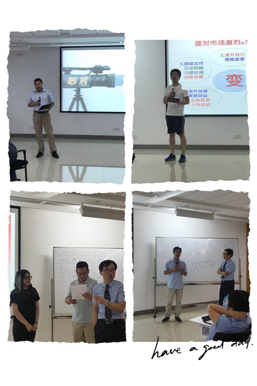 陳俐安老師就《認(rèn)識(shí)自我 戰(zhàn)勝自我》為主旨,用習(xí)主席“幸福都是奮斗出來的”開篇,通過視頻、游戲互動(dòng)、經(jīng)驗(yàn)分享等方式旁征博引進(jìn)行教學(xué),寓教于樂,將信任、協(xié)作、共贏在互動(dòng)中潛移默化。闡述在當(dāng)下,要想成為一名優(yōu)秀的管理者,就得充分認(rèn)識(shí)自我,不斷戰(zhàn)勝自我,以不變心應(yīng)萬變事,通過匠心、匠人、匠造的精神及努力將自己打造成為一名出色的管理者,建設(shè)一個(gè)更加光輝燦爛的華新機(jī)電。