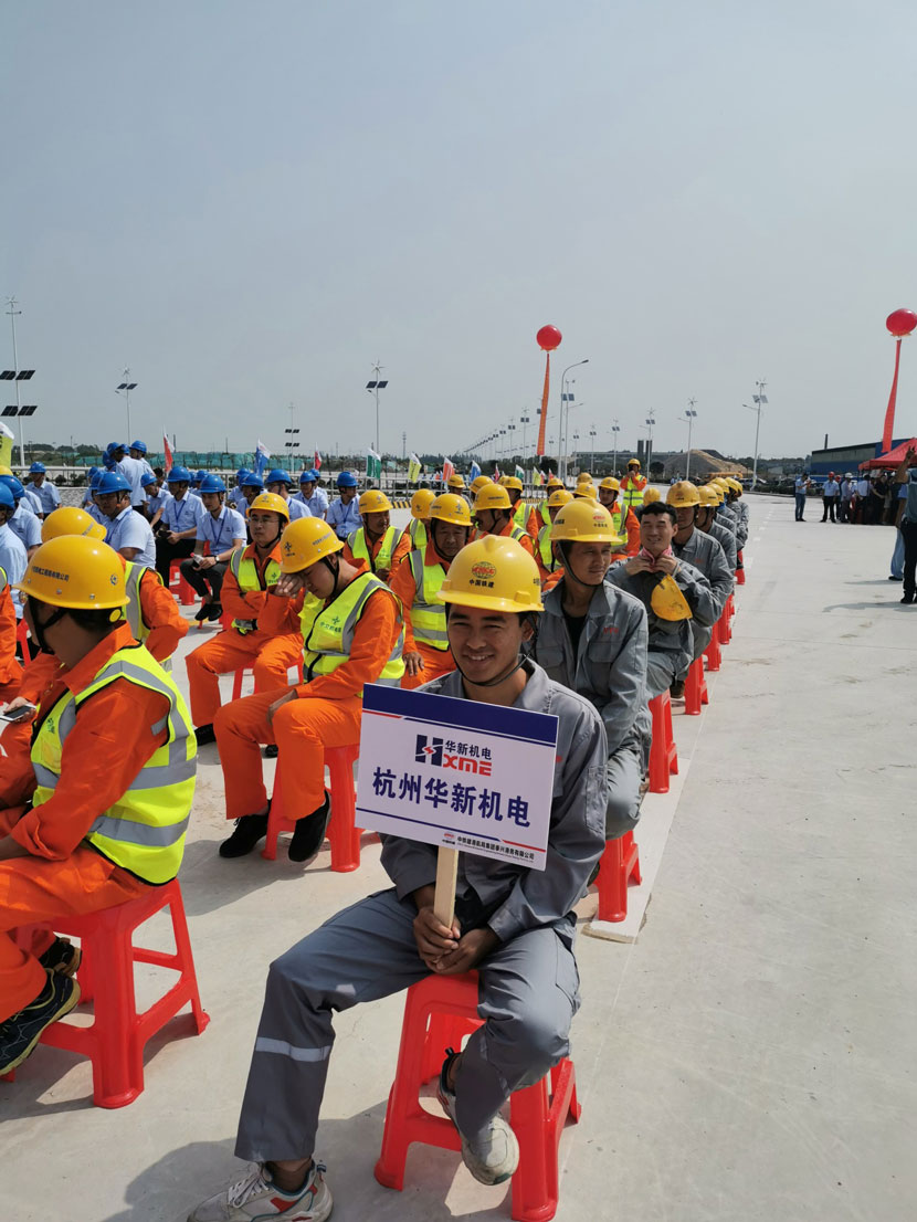 該項目于2019年10月簽訂合同,于2019年12月開工生產(chǎn)制造,原計劃于2020年7月交機(jī),但由于期間疫情的影響,給生產(chǎn)制造及整個項目的外協(xié)廠家都帶來很多難題。在此期間,公司積極與用戶進(jìn)行溝通協(xié)調(diào),督促外協(xié)廠家合理安排工序,以彌補(bǔ)因疫情影響的工期;同時,華新機(jī)電無錫制造基地及時調(diào)整了工作計劃,加班加點趕制本項目的結(jié)構(gòu)件;現(xiàn)場安裝隊更是與時間賽跑,為了保證工程節(jié)點,在確保安全的前提下,提出“大雨小干,小雨大干,天好加勁干”的口號,白天埋頭苦干,晚上加班施工,“5+2”,“白加黑”是他們的工作常態(tài)。