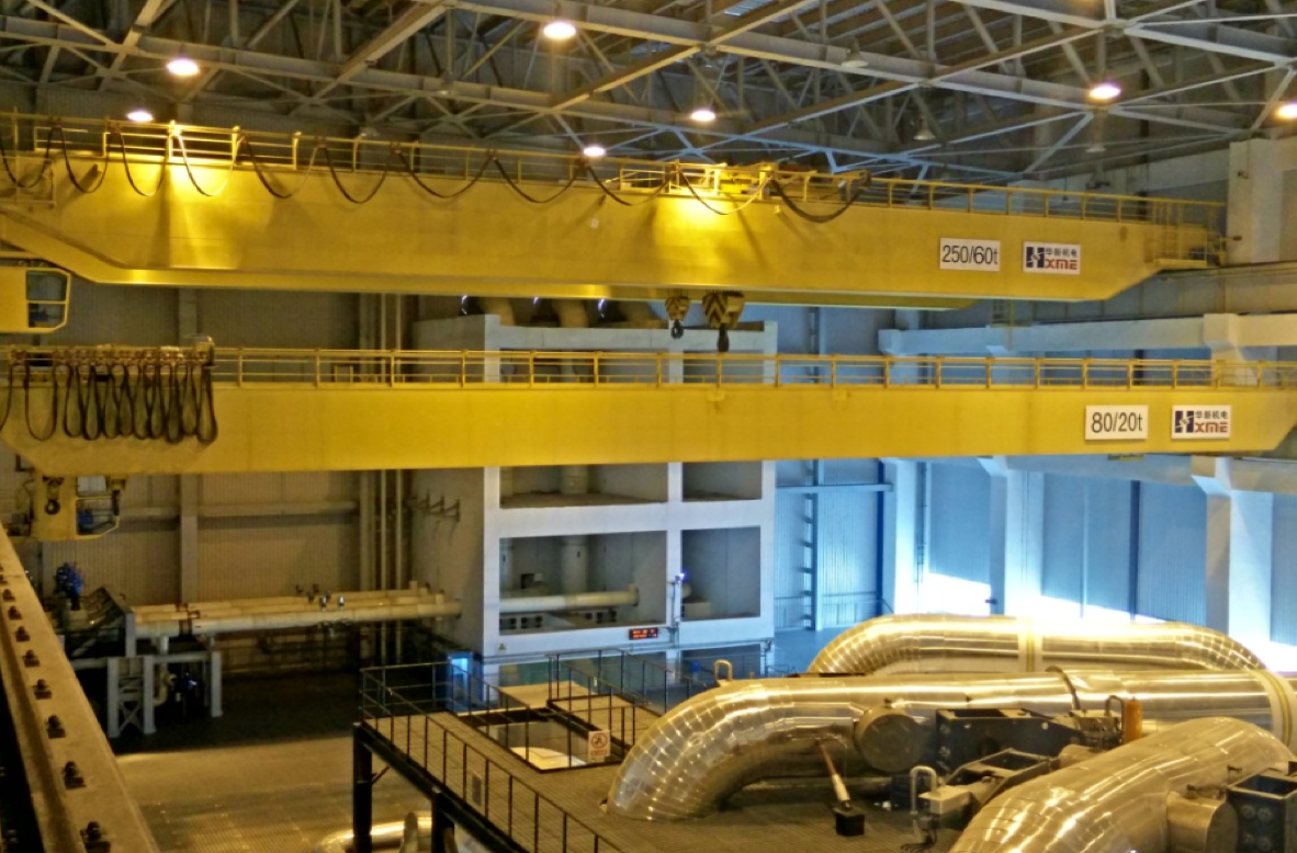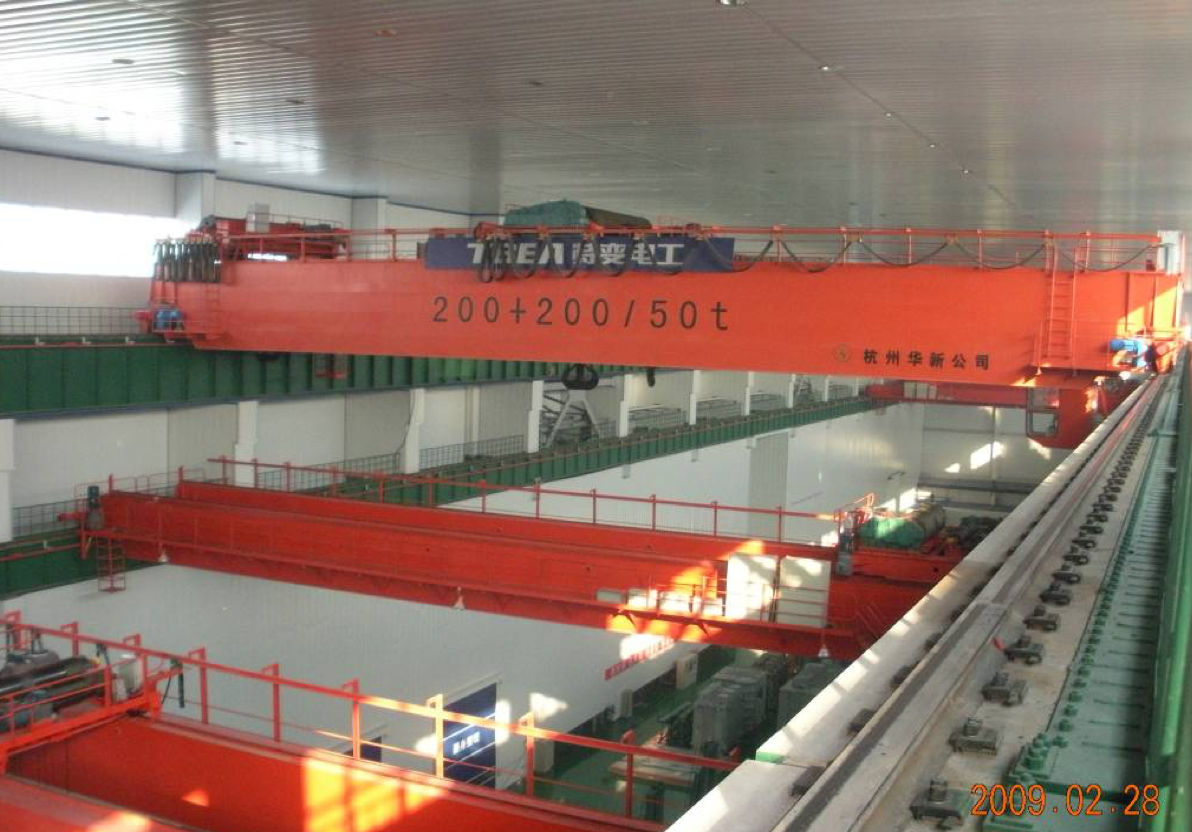 公司設(shè)計(jì)制造的所有橋機(jī)及門(mén)機(jī)的起升小車(chē)系消化吸收國(guó)外先進(jìn)技術(shù),結(jié)合我國(guó)當(dāng)時(shí)的配套水平,綜合研究院多年的技術(shù)研制經(jīng)驗(yàn),遵照GB/T3811-2008《起重機(jī)設(shè)計(jì)規(guī)范》、GB/T14405-2011《通用橋式起重機(jī)》等標(biāo)準(zhǔn),同時(shí)參照國(guó)外有關(guān)起重機(jī)標(biāo)準(zhǔn)及歐洲搬運(yùn)協(xié)會(huì)主流橋式起重機(jī)機(jī)型研制而成,節(jié)能減排,經(jīng)濟(jì)環(huán)保,特別適合地下廠(chǎng)房、新型工廠(chǎng)及大噸位貴重物件的吊裝、搬運(yùn)就位工作。公司首臺(tái)臺(tái)橋機(jī)為1990年研發(fā)、1992年投入生產(chǎn)的寧波北侖電廠(chǎng)80/20t橋式起重機(jī),公司首臺(tái)臺(tái)門(mén)機(jī)為1994年向富春江發(fā)電廠(chǎng)提供的2×20t尾水門(mén)機(jī)。近三十年的發(fā)展,已向國(guó)內(nèi)外眾多優(yōu)質(zhì)客戶(hù)提供千余臺(tái)橋機(jī)和門(mén)機(jī)設(shè)備,是目前業(yè)內(nèi)最先進(jìn)、最成熟的低凈空小車(chē)結(jié)構(gòu)。目前制造過(guò)的單小車(chē)橋機(jī)最大額定起重量為800t,雙小車(chē)橋機(jī)最大額定起重量為500t+500t,具備1500噸橋機(jī)的設(shè)計(jì)制造能力;制造過(guò)的門(mén)式起重機(jī)最大額定起重量為900t的造船龍門(mén)吊。