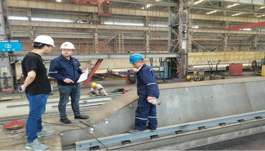 2021年,莊巍同志發(fā)現(xiàn)原先運用在陸豐900t固定式門座機上的工藝還可以改進,于是在反復(fù)地試驗和不懈地努力下,將改進工藝運用到三澳650t項目中,解決了廠內(nèi)吊裝設(shè)備能力不足且避免請大型起吊設(shè)備花費大額費用的問題。同年公司接單的德龍5037門座機項目在海重公司制作,由于該類型也是海重公司第一次制作,門架門腿結(jié)構(gòu)特殊,正常制作無法滿足圖紙要求,經(jīng)過一系列制作樣品驗證,且在圖紙視圖存在缺陷和無檢驗基準情況下,他卻始終堅信“沒有完不成的項目”,在經(jīng)過不斷的實踐后,發(fā)現(xiàn)可以通過放樣設(shè)計基準靠板可以解決問題,最終讓制作班組快速順利地完成了制作任務(wù)。