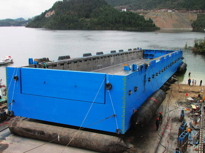 構(gòu)皮灘一級(jí)升船機(jī)承船廂構(gòu)皮灘通航工程是當(dāng)今世界通航水頭最高、單級(jí)提升高度最大、主提升設(shè)備規(guī)模最大的通航建筑物。為此公司董事長(zhǎng)徐學(xué)明親自?huà)鞄洠诠绢I(lǐng)導(dǎo)和相關(guān)部門(mén)的大力支持下,克服了現(xiàn)場(chǎng)施工的種種困難,加班加點(diǎn)按原定計(jì)劃完成結(jié)構(gòu)制作;項(xiàng)目部根據(jù)現(xiàn)場(chǎng)有限的條件精心組織、科學(xué)決策,克服烏江流域內(nèi)沒(méi)有專(zhuān)用拖帶船、在沒(méi)有可供借鑒的案例情況下,編制了詳盡的氣囊下水方案、船廂拖帶方案、各工況下的安全評(píng)估報(bào)告和應(yīng)急預(yù)案, 從而保證了承船廂平穩(wěn)入水、安全進(jìn)入船廂室。