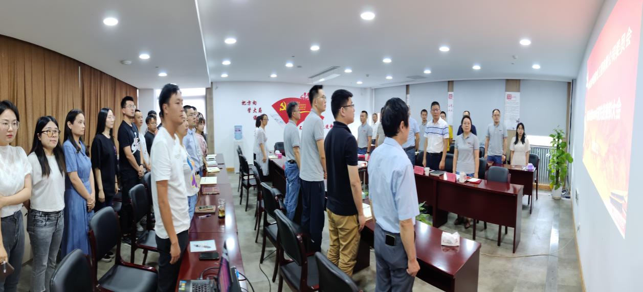 會(huì)議伊始,莊嚴(yán)肅穆,全體黨員起立共唱國歌。