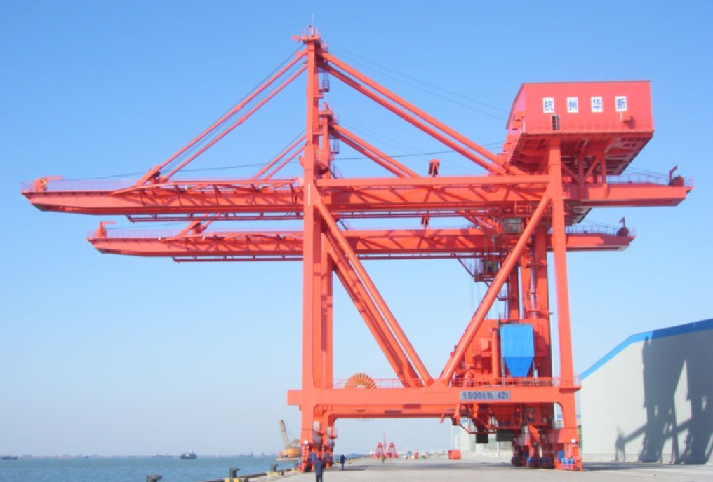 公司于1990年成功研發(fā)公司首臺臺四卷筒牽引式卸船機(jī)試驗機(jī),在上海吳涇熱電廠投入使用,1993年1臺600t/h機(jī)房下置的四卷筒牽引式卸船機(jī)在華能威海電廠投入使用,至今已運(yùn)行近30年,設(shè)備情況良好。經(jīng)過不斷地發(fā)展,不斷地積累經(jīng)驗,不斷地研發(fā)創(chuàng)新,華新機(jī)電生產(chǎn)制造的卸船機(jī)技術(shù)在不斷地升級,產(chǎn)品系列從200t/h~2400 t/h,目前生產(chǎn)制造過的生產(chǎn)率最大卸船機(jī)為馬來西來亞TJB2400t/h項目,具備設(shè)計制造2500~3500t/h卸船機(jī)的能力。產(chǎn)品廣泛應(yīng)用于電力、冶金、建材、港口、散貨碼頭等行業(yè),在“一帶一路”的偉大創(chuàng)舉下,產(chǎn)品陸續(xù)出口印尼、馬來、菲律賓、新加坡、越南等東南亞國家以及西亞、中東、南美、非洲等地區(qū),產(chǎn)品遍及國內(nèi)外。